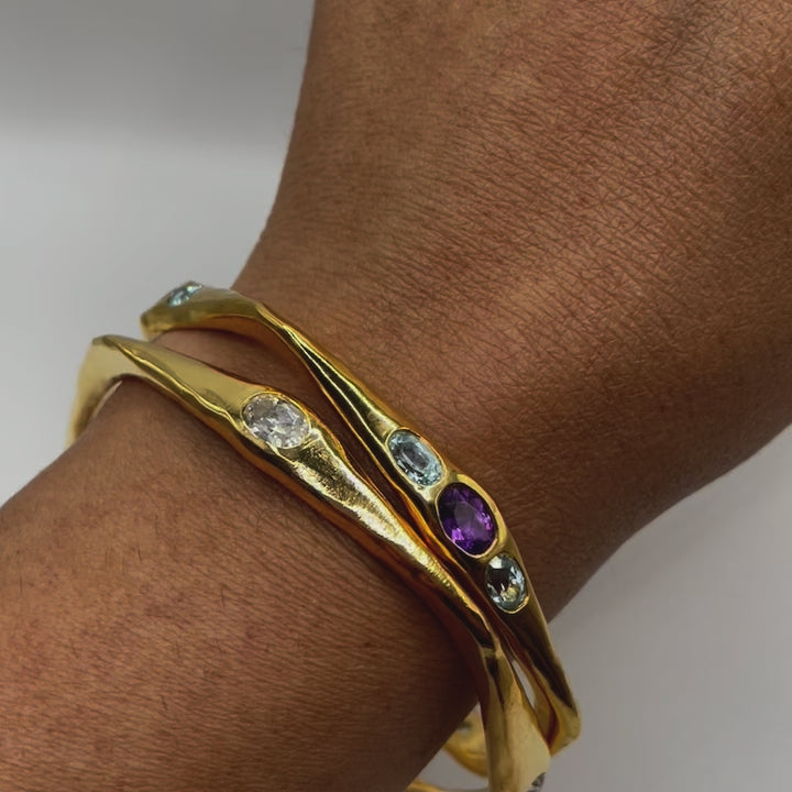 Bella - Purple Amethyst, Blue Topaz Twelve Gemstone Bangle in Gold